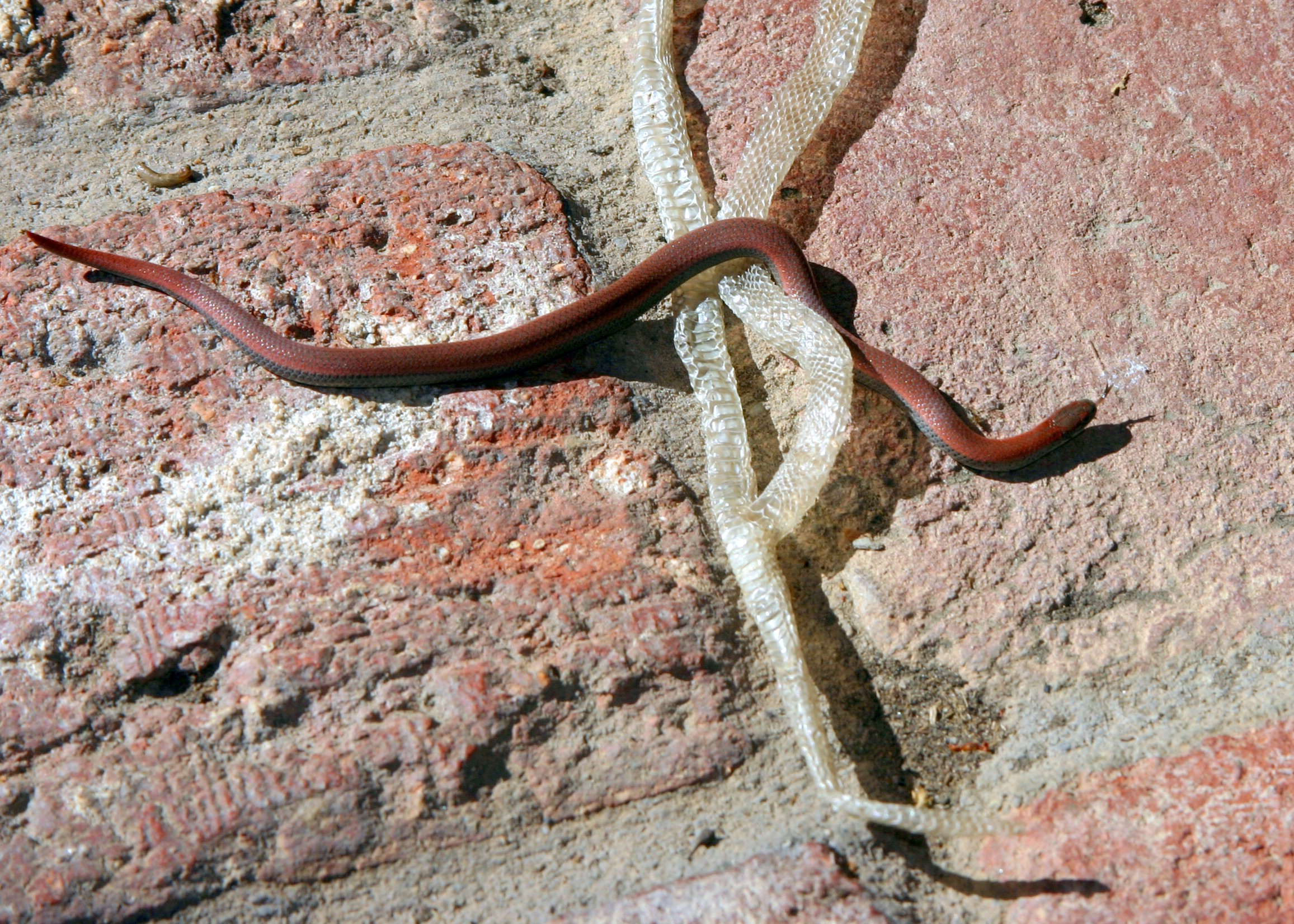 These guys live all over the place; a sure place to find them is around the barn. Click the picture for a larger image. That is a sharptailed snakes' skin he is crawling on, perhaps his!